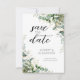 Eleganta eucalyptus-kort för att spara datumet för ett enkelt klassiskt bröllop.