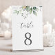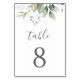 Vackra bröllopsbordnummer med akvarell eukalyptus och guldblad. Perfekt val för utomhusbröllop.