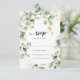 Det här utsökta, akvarell eukalyptus grenar med guldgrenar och sprutade prickar bröllop RSVP-kort är perfekt för alla trädgård, utomhus, formella, vintage, romantiska bröllop. Dess mjuka flödande design är modern men ändå traditionell. Välj Anpassa den här mallen för att göra den unik för dig. Om några sekunder ser du dina fantastiska svars kort.