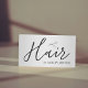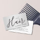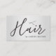 Elegant anpassningsbar mall för företags kort med falskt silver sax-ikon och bakgrund, handskriven text. Modern ren design, perfekt för frisör, hårfrisör.