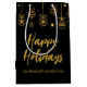 Anpassa dina snygga företags julklappar med detta eleganta gyllene kursiva manuskript under en grafisk framställning av julkulor. Den eleganta typografin på modern svart presentpåse ger en klassisk touch till anpassade företags julklappar. Personifiera denna påse med ditt företagsnamn.