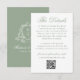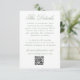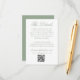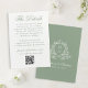 Hjälp dina gäster med lätthet med detta eleganta detaljeringskort i salvia grön färg för bröllop. ”Detaljerna” visas i graciös salvia grön kalligrafi på vit bakgrund, med utrymme att inkludera viktig information om bröllopet såsom boende, transport, detaljer om mottagningen med mera. En anpassningsbar QR-kod låter gästerna bekvämt skanna och komma åt er bröllopswebbplats. Baksidan av kortet visar parets initialer omgivna av en vit botanisk blomsterkam på en mjuk salvia grön bakgrund, med namn och bröllopsdatum nedan. Ett vackert och funktionellt tillägg till din salvia gröna bröllopsinbjudan.