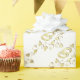 Presentera elegantt guld- bröllop sätter band på en vitbakgrund. Denna gåva som slår in papper ska komplimang din gåva. Gjort med diagram för kickupplösningsvektor.