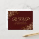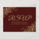 Dessa svarskort gör det enkelt för dina gäster att svara på din bröllopsinbjudan. De har en sofistikerad klassisk design med guldtext på en chokladbrun eller auburnfärgad bakgrund. Kortets hörn är dekorerade med en spetsig krullig blomsterfiligran. Baksidan har en plats för att ange antalet gäster som deltar och ett val av måltid. Vacker inklusion för dina bröllopsinbjudningar.
