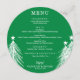 En elegant grön rund middagsmeny med vita julgranar visar dina meny detaljer i chic bokstavering. Perfekt för en högtidlig julfest eller någon speciell händelse med en sittande middag.