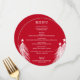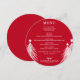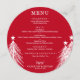 En elegant röd rund middagsmeny med vita julgranar visar dina meny detaljer i chic skrivstil. Perfekt för en högtidlig julfest eller någon speciell händelse med en sittande middag.