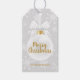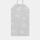 Eleganta julgransprydnader i form av snöflingor presentetikett