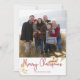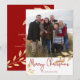 Elegant jul guldblad | Julkort med röd bakgrund. Dessa eleganta julkort har falska guldblad och en modern versal hälsning. Massor av utrymme på baksidan för din egen hälsning. Lägg till ditt eget foto för ett riktigt personligt kort.