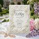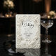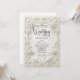Meddela din sagolika union med denna antikinspirerade design. Med en romantisk barockestetik ger den utseendet av lyxskulptur på högkvalitativt papper. Denna design har en sofistikerad monokrom palett i creme, elfenben och mjuk beige, som simulerar utseendet av snidad gips eller kalksten. Konstverket visar en falsk basreliefram med klassiska arkitektoniska kolonner, invecklad filigransrullning och blommande rosenrankor. I rubriken möts två eleganta svanar för att bilda en subtil hjärtform, vilande på en säng av formade blommor. Typografin presenteras i ett formellt grått skrivstil och serif-teckensnitt, vilket säkerställer hög kontrast mot den ljusa bakgrunden.