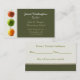 Denna unika lärare visitkort göras i en kaki- grönt och solbrännafärger, med fotografi av tre färgrika äpplen på vänster sida av kortet. Baken är den gjorda något liknande per det möte kortet för förälderlärarekonferenser. All text är klar att personifiera med din information. Underbar visitkort för någon lärare.