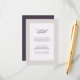 Denna eleganta och minimalistiska detalj för bröllopsgäster har en vacker mörklila och grå färgpalett. Den enkla texten har en romantisk svart kalligrafisk typsnittsstil.