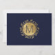 Elegant, modern och chic falsk guld- och trendig marinblå blomster handritad design, Rädda datum bröllopskort. Denna klassiska och sofistikerade design är perfekt för det trendiga och stiliga brudparet. Anpassa med eget meddelande på framsidan samt en anpassad monograminitial på baksidan. Allt foto trycks design.