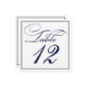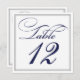 Eleganta marinblå skrivbordsnummerkort med script inbjudningar