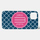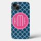 Eleganta marinblåa Quatrefoil med den rosa monogramen