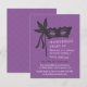 En elegant, chic och stilren inbjudan huvudsakligen i svart och lila till din maskeradbal! Designen fokuserar på siluetten av en mask med fjädrar och banddekorationer. I den lila bakgrunden finns ett subtilt invecklat damastmönster. Denna inbjudan är också bra för en Mardi Gras-tematisk fest! Perfekt för företagsfunktioner, skolavslutning och hemfester. Anpassa enkelt med dina festdetaljer!