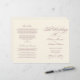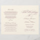 Mjuk mauve-kalligrafi stavas ut "The Wedding Of" i svepande utsmyckad skrift mot en varm elfenbensvit bakgrund på detta eleganta vigselprogram. Dekorativa rullar i matchande mauve lägger till en romantisk finish till den raffinerade designen. De interna sidorna kan anpassas helt för ert bröllopssällskap, ordningen för ceremonin och ett personligt tackmeddelande på baksidan. Programmen trycks på papper med textvikt och levereras platt, och kräver en enkel mittveckning.