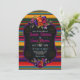 Fira kärlek med djärv skönhet och kulturell rikedom i denna eleganta mexikanska blommor valvformade bröllopsinbjudan. Med blommor i livfulla nyanser av fuchsia, kadmiumgult, turkos och grönt är denna design satt mot en färgrik randig bakgrund inspirerad av traditionella mexikanska textilier. Den livfulla färgpaletten och festliga mönstret balanseras av elegant typografi och en ren layout som blandar glädjefull energi med tidlös sofistikation. Perfekt för fiesta-tema bröllop, kulturella firanden eller destinationsevenemang, denna inbjudan ger värme, charm och en livlig känsla av stil till din speciella dag.
