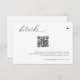 Bröllopsinformationskort: Dessa enkla, moderna och eleganta bröllopsinformationskort har en ren design med en QR-kod, som ger gästerna ett bekvämt sätt att komma åt er bröllopswebbplats. Ett kort, genomtänkt meddelande uppmanar gästerna att skanna koden för alla viktiga detaljer på er stora dag. Perfekt för par som vill kombinera stil och funktionalitet, dessa kort lägger till en snygg, personlig touch till er bröllopspappersvaror.