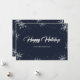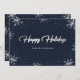 Eleganta moderna blå och silver julkort med snöflingor och snö på en mörkblå bakgrund. En vacker handskriven titel med en silverfolieeffekt i mitten. Personalisera enkelt dessa blå och silver snöflinga julkort med ditt familjenamn och meddelande. Anpassade förfrågningar är välkomna.