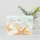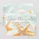 Denna vackert designade "Save the Date"-kort blandar modern elegans med avspänd charm från stranden. Med ömtåliga sjöstjärnor och snäckaccent inspirerade av strandlinjen fångar den romantiken vid havet samtidigt som den bibehåller en ren och sofistikerad layout. Den raffinerade typografin säkerställer att era namn och bröllopsdatum sticker ut tydligt och ger ett polerat första intryck för era gäster. Perfekt för destinationbröllop, strandceremonier, tropiska firanden eller eleganta kustmottagningar sätter denna design tonen för en stilfull händelse vid havet. Oavsett om ni utbyter löften på sandiga stränder eller firar på en strandnära lokal skapar detta "Save the Date"-kort förväntan med tidlös strandinspirerad skönhet. Helt anpassningsbart med era namn, bröllopsdatum och lokaldetaljer hjälper detta kort er att tillkännage er fest på ett sätt som känns