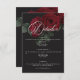 Omfamna tidlös elegans för din gotiskt inspirerade fest med vår fängslande inbjudan till bröllopets detaljer. En mjuk svart bakgrund ger den perfekta duken för en fängslande, men ändå återhållsam bukett. Föreställ dig ett arrangemang av dämpade blodröda rosor, där rika röda nyanser blandas med mörkgrön lövverk. Denna eteriska design utstrålar tyst sofistikation, perfekt för den blivande bruden som söker en touch av romantisk mörker. Ett elegant, vintage-manuskript presenterar ditt kort, medan dina detaljer visas i en modern typsnitt, vilket säkerställer att de sticker ut vackert. Denna förtrollande design skapar en verkligt oförglömlig design för ditt speciella evenemang och sätter tonen för en