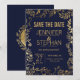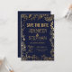Eleganta Navyblå och Guld Blommiga Spara Datum Inbjudningar