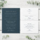Ett elegant kort med bröllopsdetaljer med en djup marinblå bakgrund med raffinerad vit script- och serif-typografi, tillsammans med en QR-kod och en rad för bröllopswebbplatsen för ökad bekvämlighet. Detta vertikala inklusionskort erbjuder ett rent och polerat sätt att dela praktisk information till gästerna samtidigt som det behåller en tidlös formell look.