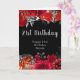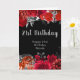 Vacker födelsedagskort med röda blommor och silverfärgat lövverk. Orden kan ändras för att passa dina egna detaljer eller krav. Skulle vara perfekt för en födelsedagsfest.