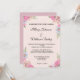 Elegant rosa blå blomsterbröllopsblommor anpassad inbjudningskort är rosa och har vackra blommor på kanten. Det är trendigt och chic. Anpassa det för ditt bröllop.