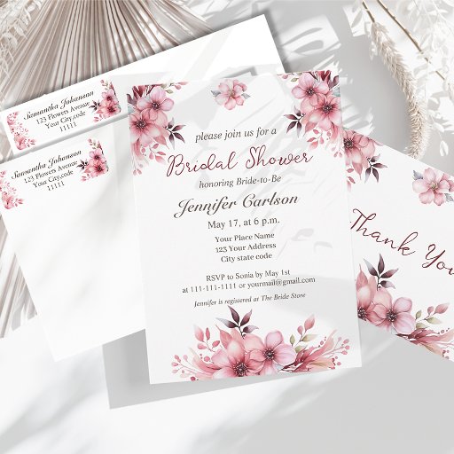 Vackra rosabruna rosa blommor. Elegant tackkort för bröllopsfest och andra tillfällen. Texterna är helt redigerbara.