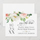 Romantisk och elegant design med rosa, blush, krämfärgade akvarellblommor, blomsterdivider, handskriven "Spara datum" med kalligrafiska ornament; på baksidan blomsterbukett. Använd verktyget Anpassa för att lägga till din information och göra ändringar. För matchande artiklar besök min Unika Blush Blommor Kollektion.