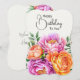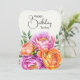 Skicka födelsedagsönskningar med tidlös blomsterprakt. Detta platta födelsedagskort har ett vackert detaljerat akvarellarrangemang av rosa peonior och varma orange rosor, kompletterat med mjuk grönska och elegant typsnitt. Den formade kortformen ger ett raffinerat, modernt tilltal som sticker ut från traditionella vikta kort.