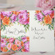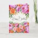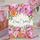 Fira en födelsedag med tidlös blomsterprakt. Detta födelsedagsgratulationskort har ett frodigt akvarellarrangemang med rosa peonior och korallrosor, infattade i mjuk grönska för en elegant och feminin look. Den handmålade stilen och livfulla blommorna skapar en varm och glädjefull design som känns både klassisk och modern.