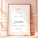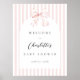 Sofistikerad girlly baby shower-välkomstskylt med ett enkelt rosa och vitt randigt mönster, en söt rosa rosett.