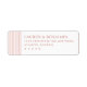 Dessa returadressetiketter har en minimalistisk design med mjuka rosa och vita nyanser som skapar ett elegant och sofistikerat utseende. Layouten inkluderar vertikala ränder på vänster sida som lägger till struktur åt den rena kompositionen, medan texten är hierarkiskt ordnad i ett modernt sans-serif-teckensnitt för tydlighet och stil. Perfekta för formella tillfällen, förmedlar dessa etiketter en förfinad atmosfär genom sin användning av negativt utrymme och subtila färgkontraster, vilket gör dem idealiska för dem som uppskattar underdriven elegans.