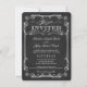 Vintage skol tavla bröllopsinbjudningar med rundade hörn. Vackra fina virvlar, rullar och 1800-talets viktorianska blomster motiv med elegant svängig typsnitt blandat med retro krita kalligrafi och lockig ram på svart tavla bakgrund. Perfekt för eleganta formella kyrkbröllop eller rustika landsbygd bröllop, gods, eller trädgårdsbröllop med en touch av trendig modern sofistikerad stil för traditionella par. Lägg bara till brud och brudgummens namn och dina egna bröllopsdetaljer för att skapa looken av lyxiga inbjudningar till ett överkomligt pris. Lättanvänd mall kan modifieras för formella eller semi-formella bröllop. Klicka på Anpassa för att ändra typsnitt och teckenstorlek. Vänligen kontakta oss för hjälp med anpassning om du behöver ytterligare utrymme för dina bröllopsdetaljer. OBS: Storlek för små (