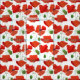 En mycket vacker tyg med ett sömlöst upprepande mönster av scharlakansröda vallmoblommor på en vit bakgrund som du kan ändra om du vill. Från en handmålad papperscollage av Judy Adamson, denna ljusa, blommiga design är en del av Posh & Painterly 'Poppy Fields' kollektionen.