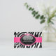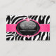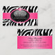©Socialitedesigner 2011. Elegant mode och åtfölja visitkortdesign som inkorporerar en zebra mönstrad bakgrund med glansiga juvlar för textområde och rosa. BehovsHJÄLP med customization? Please tvekar inte att kontakta mig med dina krav och en anknyta till denna design.