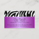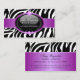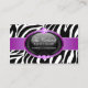 ©Socialitedesigner 2011. Elegant mode och åtfölja visitkortdesign som inkorporerar en zebra mönstrad bakgrund med glansiga juvlar för textområde och lila. BehovsHJÄLP med customization? Please tvekar inte att kontakta mig med dina krav och en anknyta till denna design.
