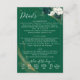 Dela viktiga bröllopsdetaljer med detta eleganta smaragdgröna ros-fodralskort. Den sofistikerade akvarellblomdesignen har mjuka botaniska element som är perfekta för trädgårdsbröllop, vingårdsfiranden eller klassiska ceremonier. Använd för mottagningsinformation, vägbeskrivningar, boendeinformation eller registreringsinformation. Koordinater sömlöst med matchande inbjudningsserier för en sammanhängande brevpappersamling.