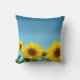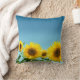 Eleganta solrosor på himmelblå nyanser bakgrund Kastkudde.
