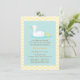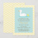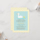 En elegant inbjudan till babykalas i färgpalett av pastellblå, gul och vit. Designen visar en mammaand som simmar medan hennes lilla ankunge följer efter henne. Designen är könsneutral och låter dina gäster gissa barnets kön. Bakgrundsgul och vit chevron-sicksackmönster. Anpassa enkelt med dina festdetaljer.