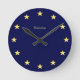 Moderna eleganta stjärnor på marinblå väggklocka. Texten Sunrise kan anpassas.