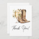 Fira bruden med dessa charmiga Boots & Bubbly tackkort för bröllopsfest, där rustik möter elegans. Med ett par akvarell-cowboy-stövlar och ett champagneglas som blommar med krämfärgade blommor, sätter denna enkla men sofistikerade design tonen för en stilren fest. Perfekt för country-chic eller västerländska shower med en bubblig twist!