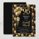 Eleganta svarta guldglittrande ballonger 95-årsdag inbjudningar