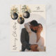 Vår personliga vykort har en elegant design med akvarell juldekorationer och glaskulor samt en girlang med blad och slingor i eleganta nyanser av guld, svart och grönt med ert foto i en bågformad ram. Anpassa med familjens namn och år i klassisk serif-stil kombinerat med modern accentbrevstypografi. Lägg till ett personligt och hjärtligt meddelande på baksidan med hjälp av mallen. Sprid kärlek och glädje med de närmaste under denna julhelg med dessa snygga vykort.