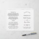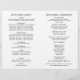 Eleganta, enkla och stilrena bröllopsprogram med svart anpassad text på vit bakgrund. Anpassa texten för ditt brölloppssällskap, bröllopsinformation och tackmeddelande. Obs: dessa program levereras platta och måste vikas för att monteras.