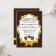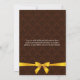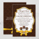 © Socialite Designs. Vår eleganta bakverksinbjudan har en chokladbrun damaskbakgrund, en vacker textremsa i guld och brunt, tre tårpinnar och ett falskt guld-samtinband och en rosett-design. Om du behöver HJÄLP med att anpassa denna storslagna öppningsinbjudan för din händelse, vänligen kontakta Socialite Designs med dina krav.