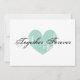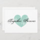 Eleganta turkosa hjärtformade förlovningsfestinbjudningar. Romantisk kärleksdesign med väderbitet hjärta och anpassad citat som tillsammans för evigt. Elegant skrivstil. Även bra för årsdag, bröllop eller födelsedagsfirande.