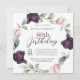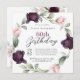 En mjuk och lyxig 60-årsfirande inbjudan där brännpunkten är en krans av ömtåliga akvarellrosor målade i mjuka rosa och rika plommonfärgade violetta nyanser sammanflätade med kvistar av luftig grönska. Dessa blomsterarrangemang inramar din text med en romantisk och elegant touch. Genom att kombinera eleganta serif- och moderna script-typsnitt blir textlayouten tilltalande och klassisk. Denna inbjudan design utstrålar en förfinad, tidlös charm perfekt för en minnesvärd milstolpefirande.
